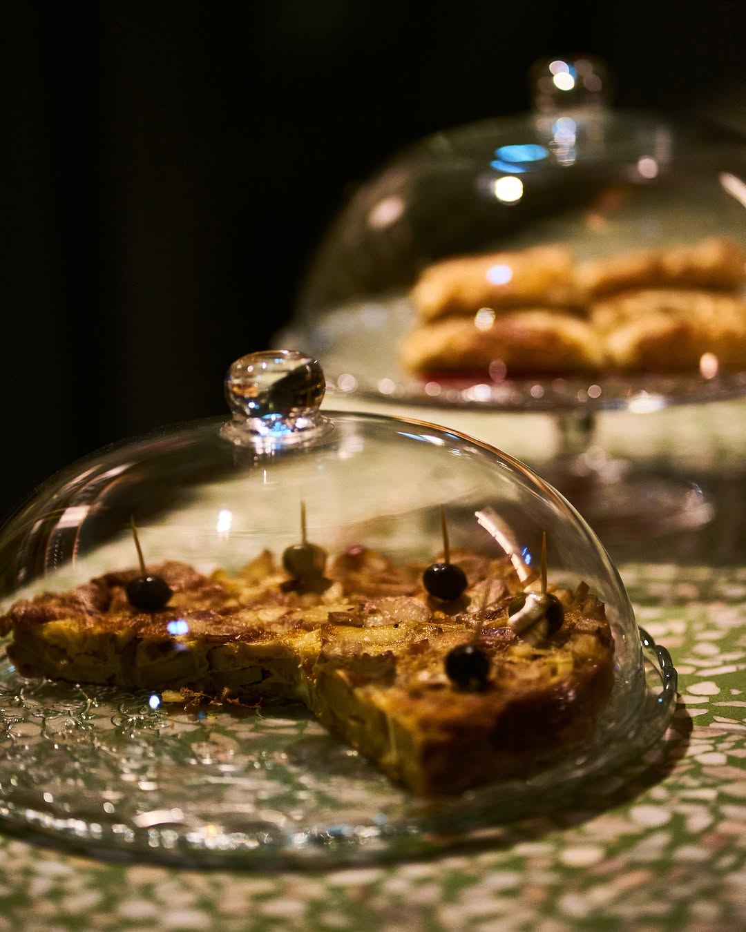 One space, many moods — aperitif conversations at golden hour, cozy cellar evenings below.